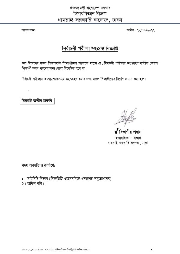 নির্বাচনী পরীক্ষার বিজ্ঞপ্তি |