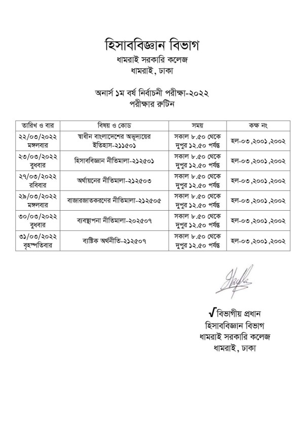 অনার্স প্রথম বর্ষ নির্বাচনী পরীক্ষার রুটিন |