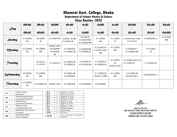 বিভাগের রুটিন |