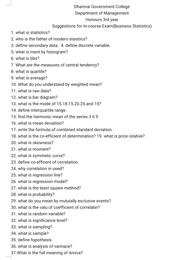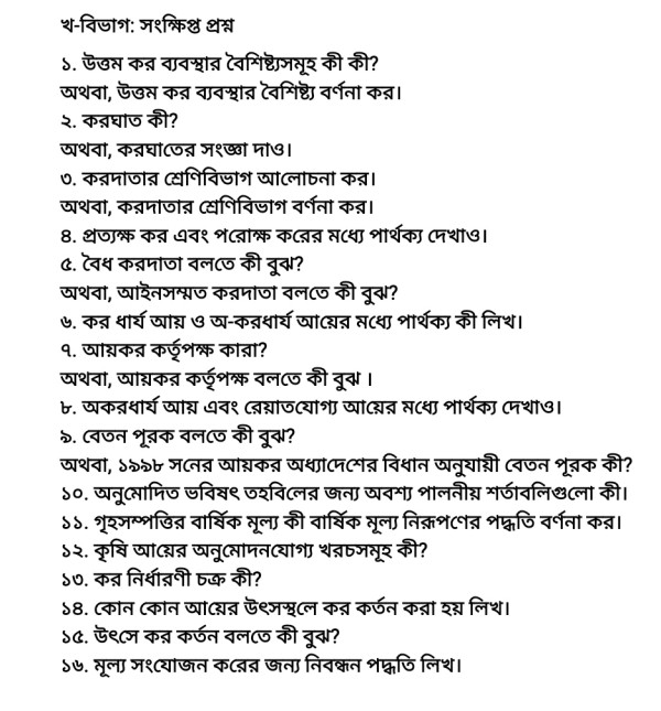 অনার্স ৩য় বর্ষের ব্যবস্থাপনা বিভাগের বাংলাদেশের কর বিধি এবং পরিসংখ্যান বিষয়ের নির্বাচনী,প্রাক নির্বাচনী পরীক্ষার এসাইনমেন্ট এবং ইনকোর্স পরীক্ষার সাজেশন। |