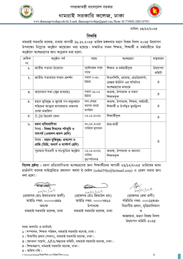 Notice Title : মহান বিজয় দিবস উদযাপন - ২০২৫