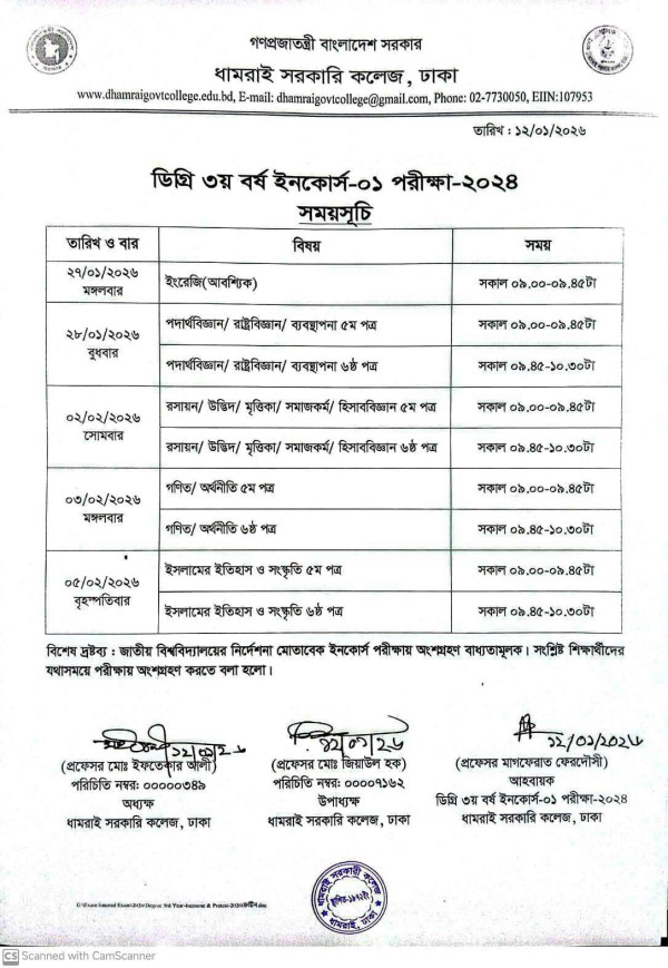 Notice Title : ডিগ্রি ৩য় বর্ষ ইনকোর্স-০১ পরীক্ষা-২০২৪ এর সময়সূচি