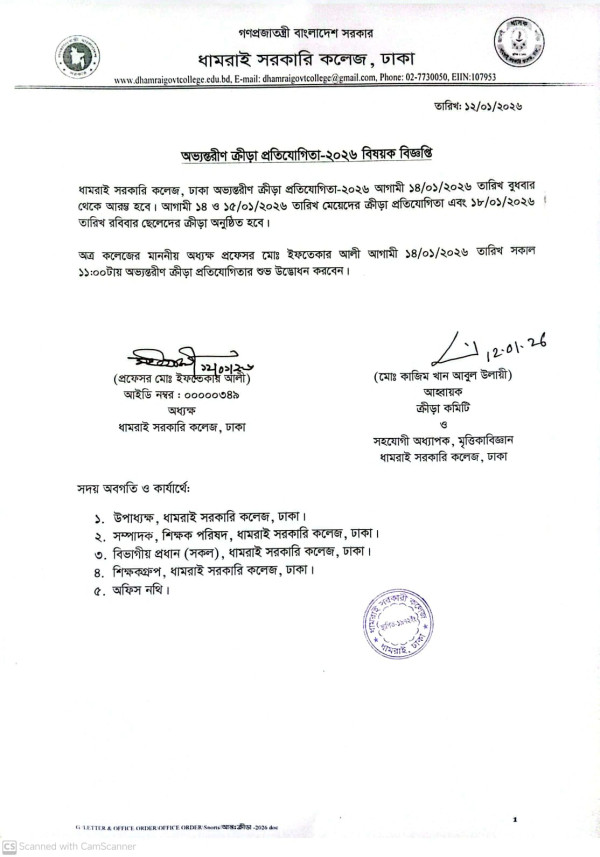 Notice Title : অভ্যন্তরীণ ক্রীড়া প্রতিযোগিতা-২০২৬