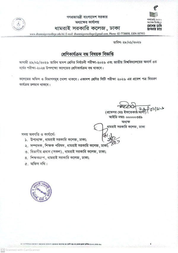 Notice Title : শ্রেণিকার্যক্রম বন্ধের বিজ্ঞপ্তি
