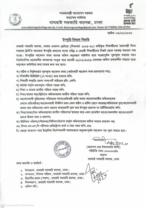 Notice Title : উপবৃত্তি বিষয়ক বিজ্ঞপ্তি