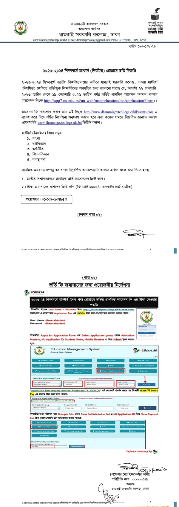 Notice Title : মাস্টার্স (নিয়মিত) শ্রেণিতে ভর্তি বিজ্ঞপ্তি