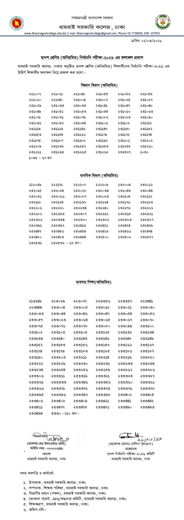 Notice Title : দ্বাদশ অনিয়মিত শিক্ষার্থীদের নির্বাচনী পরীক্ষা-২০২৬ এর ফলাফল