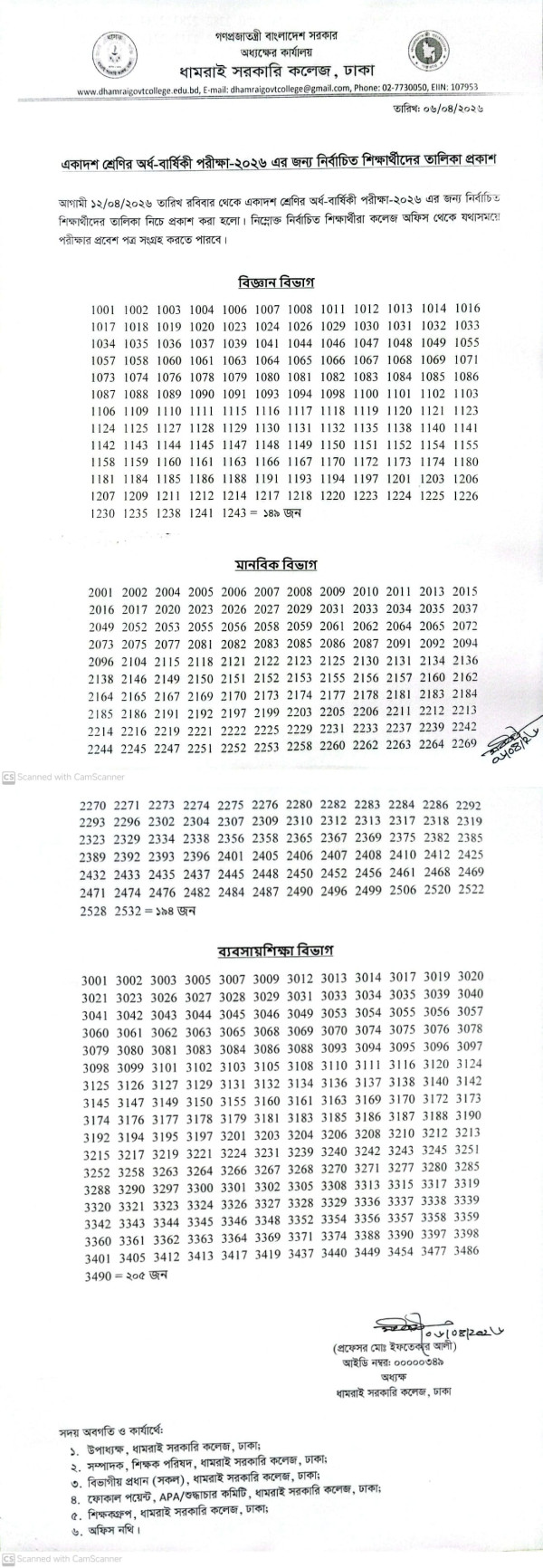 Notice Title : একাদশ শ্রেণির অর্ধ-বার্ষিকী পরীক্ষা-২০২৬ এর জন্য নির্বাচিত শিক্ষার্থীদের তালিকা প্রকাশ