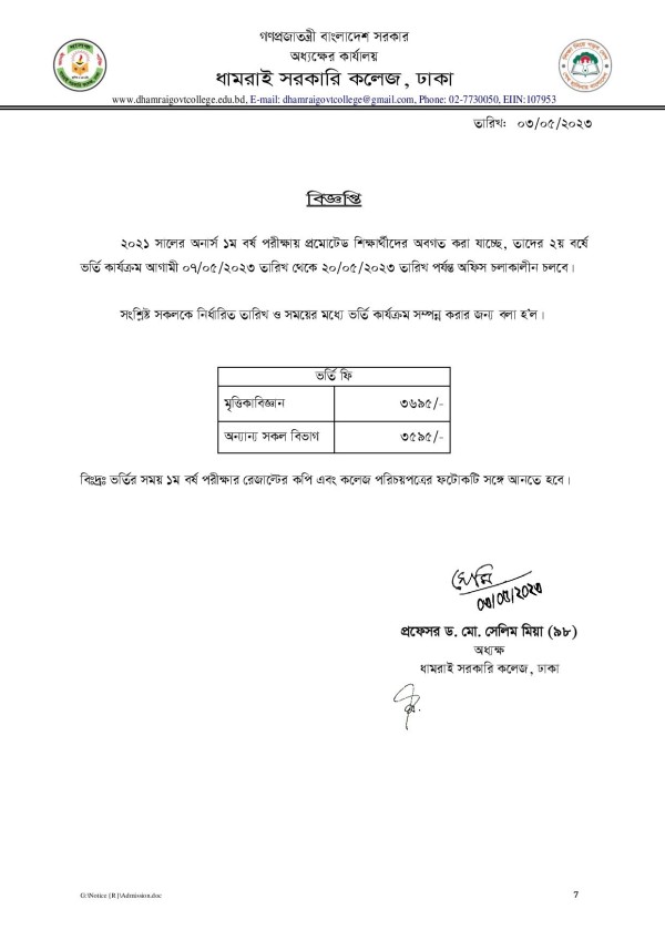 Notice Title : ভর্তি বিজ্ঞপ্তি