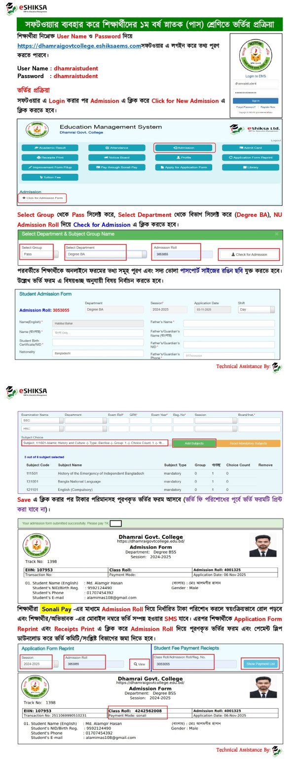 Notice Title : সফটওয়্যার ব্যবহার করে ২০২৪-২০২৫ শিক্ষাবর্ষে ১ম বর্ষ স্নাতক (পাস) শ্রেণিতে ভর্তির প্রক্রিয়া
