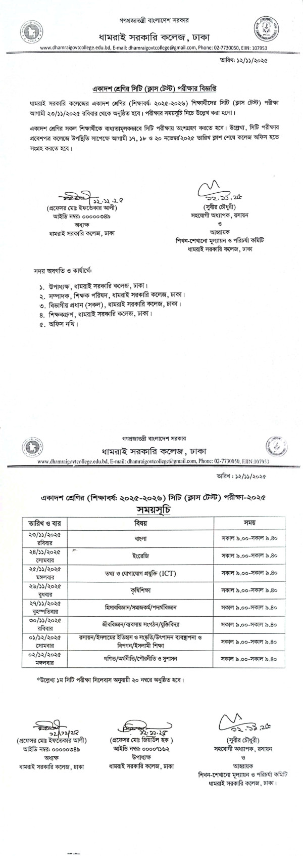 Notice Title : একাদশ শ্রেণির সিটি (ক্লাস টেস্ট) পরীক্ষার বিজ্ঞপ্তি ও সময়সূচি
