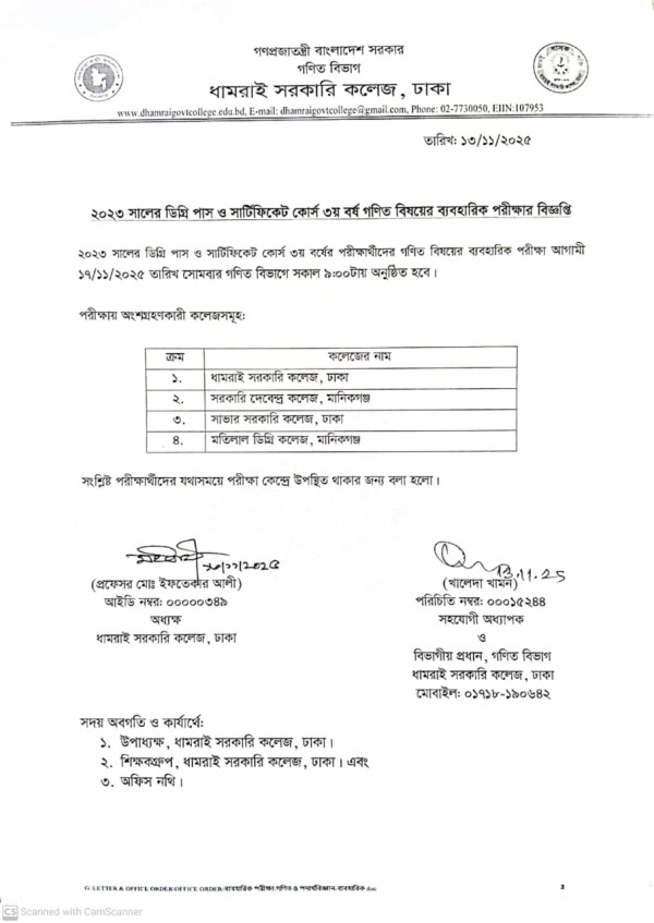 Notice Title : ২০২৩ সালের ডিগ্রি ৩য় বর্ষের গণিত ব্যবহারিক পরীক্ষার সময়সূচি