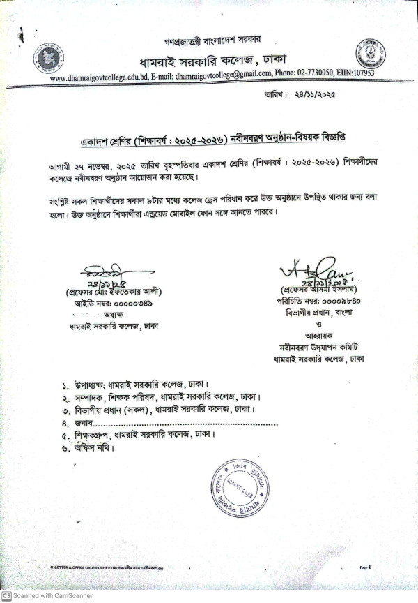 Notice Title : একাদশ শ্রেণির নবীনবরণ অনুষ্ঠান-বিষয়ক বিজ্ঞপ্তি