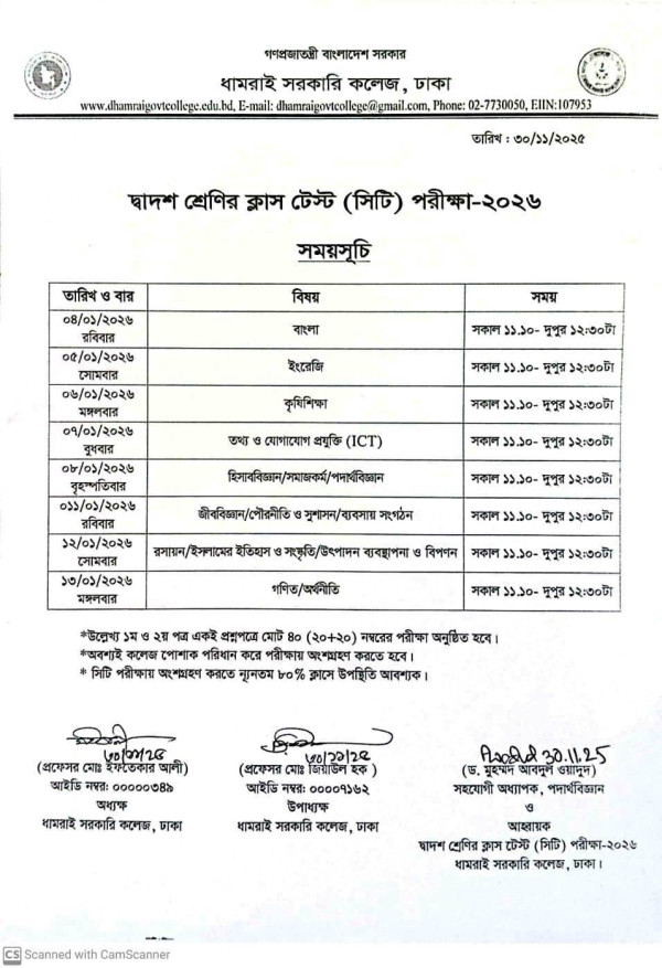 Notice Title : দ্বাদশ শ্রেণির ক্লাস টেস্ট (সিটি) পরীক্ষার সময়সূচি