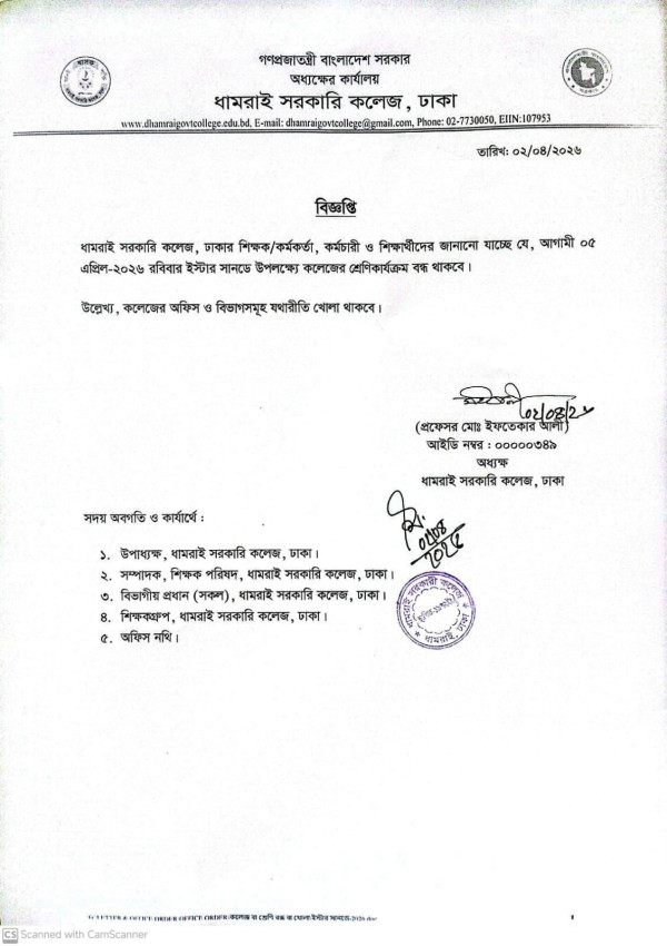 Notice Title : শ্রেণিকার্যক্রম বন্ধের বিজ্ঞপ্তি