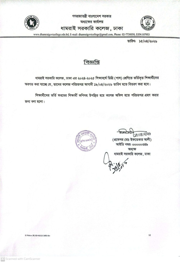 Notice Title : কলেজ পরিচয় পত্র বিতরণের বিজ্ঞপ্তি