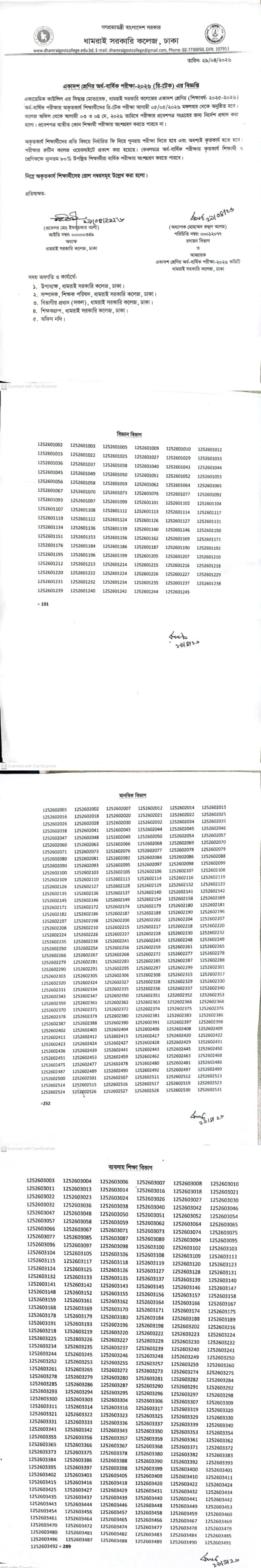 Notice Title : একাদশ শ্রেণির অর্ধ-বার্ষিক (রি-টেক) পরীক্ষা-২০২৬ সংক্রান্ত বিজ্ঞপ্তি